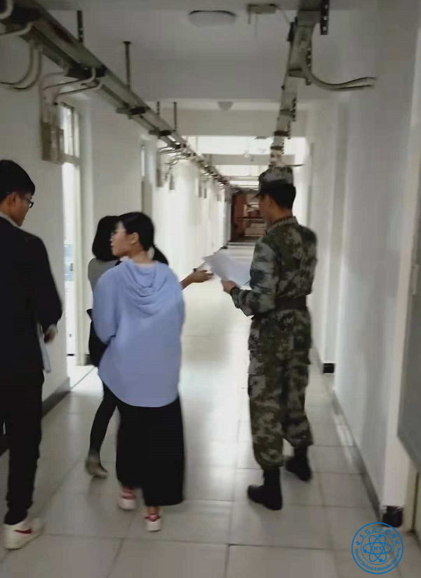 教官在宿舍门口查看宿舍整体效果