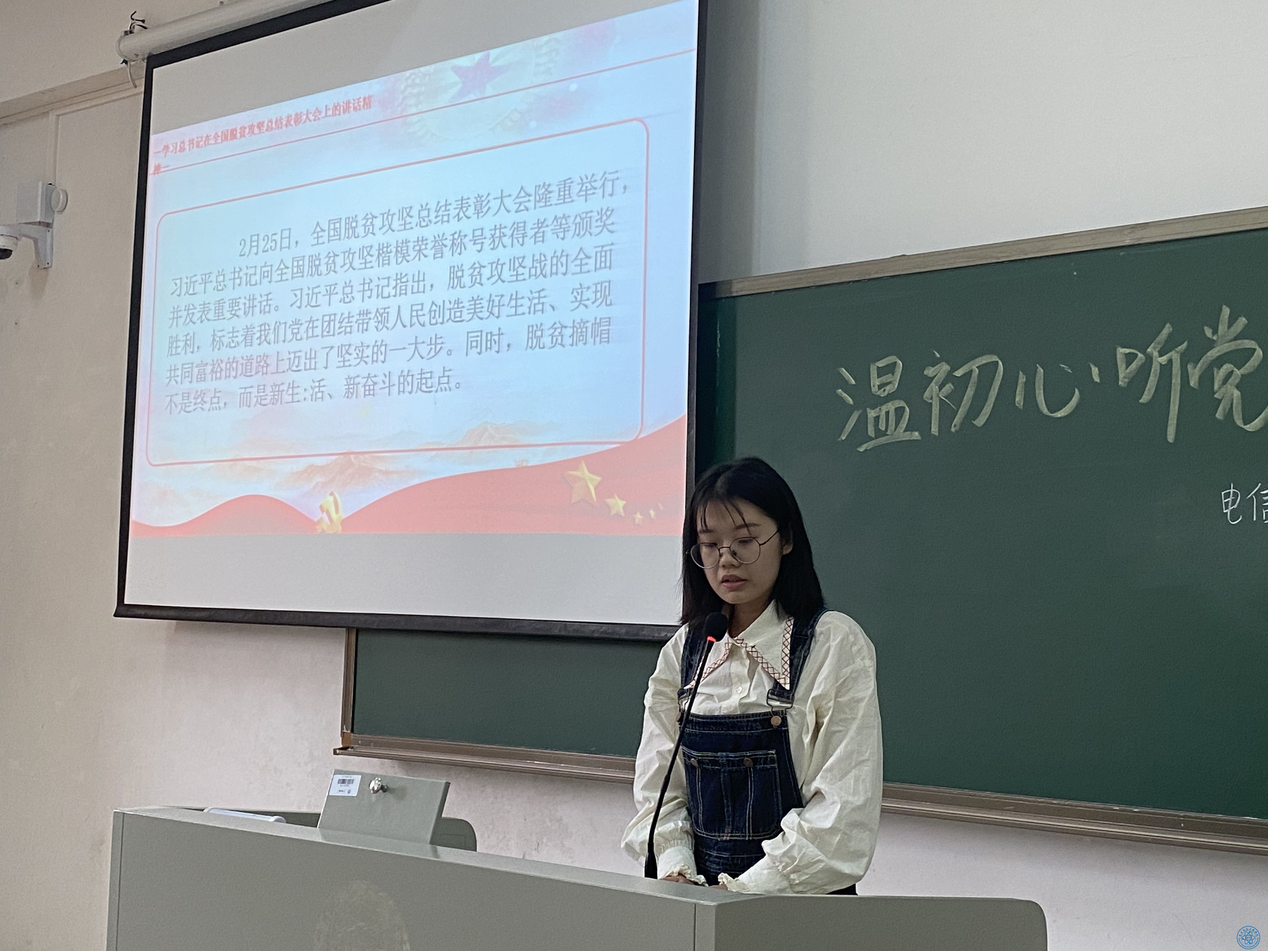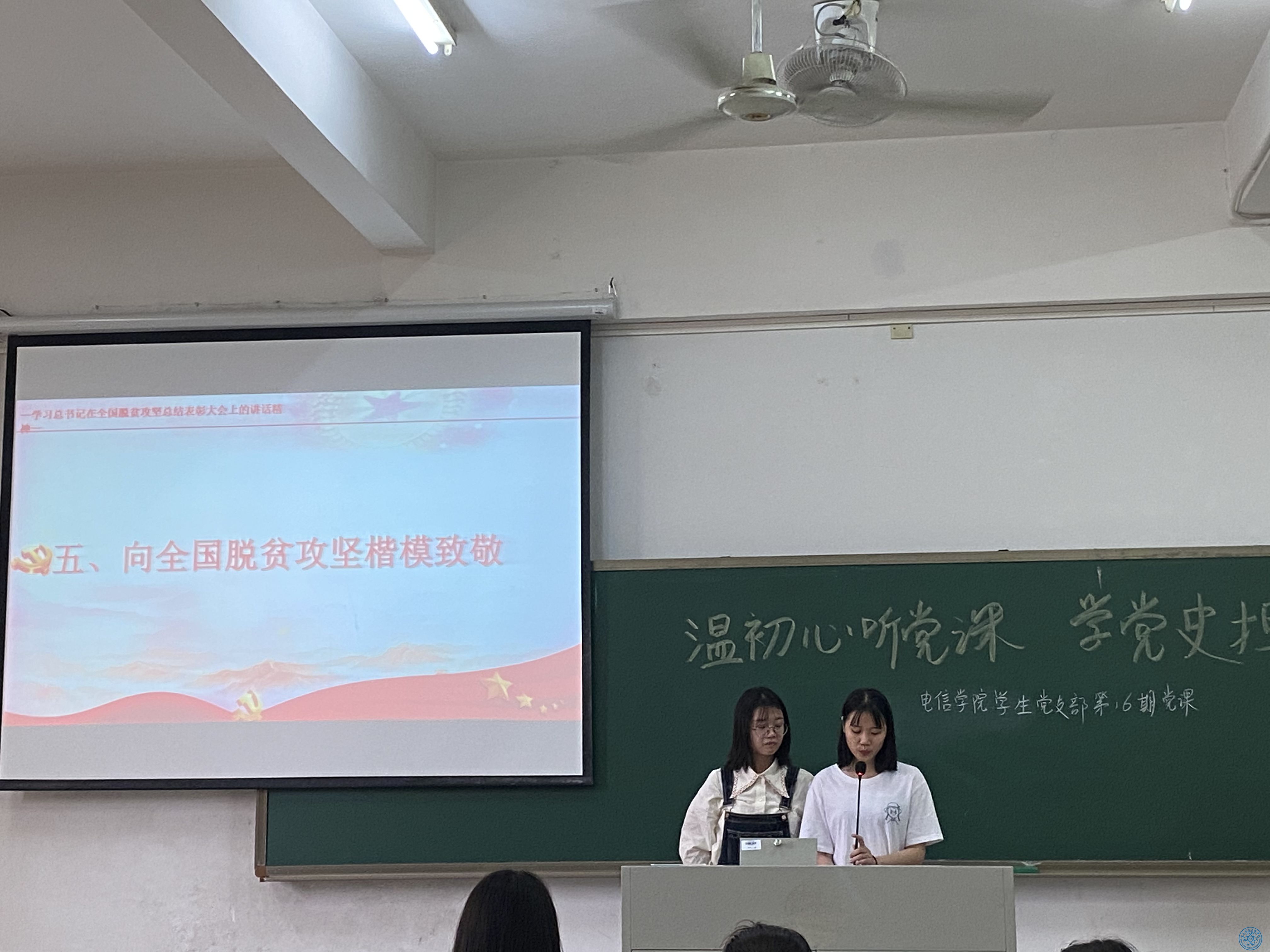 本网讯(记者 张玉蓉)9428cn太阳集团古天乐学生联合党支部于2021年4月1日,在A1-205举行了第十六次微党课学习。本次微党课的主题是《取得脱贫攻坚战胜利》的主题报告,主讲人是陈镁思、黄子羡同志,全体学生党员同志和入党积极分子都认真听取此次党课。