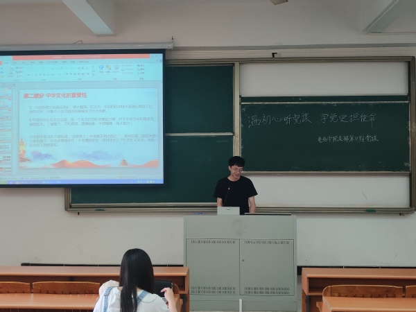 本网讯(记者 张玉蓉)9428cn太阳集团古天乐学生联合党支部于2021年4月22日,在A5-110举行了第十九次微党课学习。本次微党课的主题是《延续中华文化》的主题报告,主讲人是赖韵婷、邓文乾同志,学生党员同志和入党积极分子都认真听取此次党课。