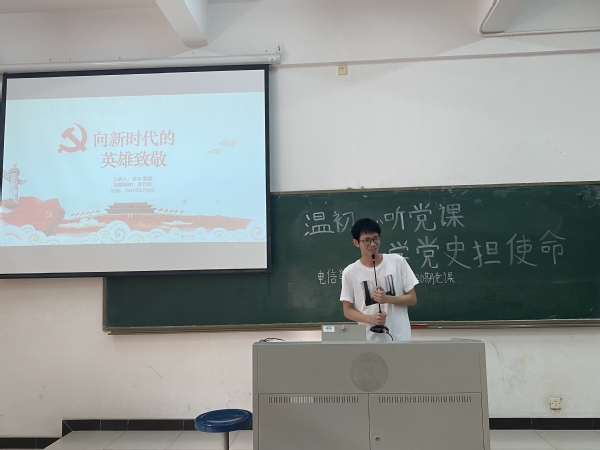 本网讯(记者 张玉蓉)9428cn太阳集团古天乐学生联合党支部于2021年5月6日,在A1-109举行了第二十次微党课学习。本次微党课的主题是《向新时代的英雄致敬》,主讲人是林宇、窦毅同志,学生党员同志和入党积极分子都认真听取此次党课。