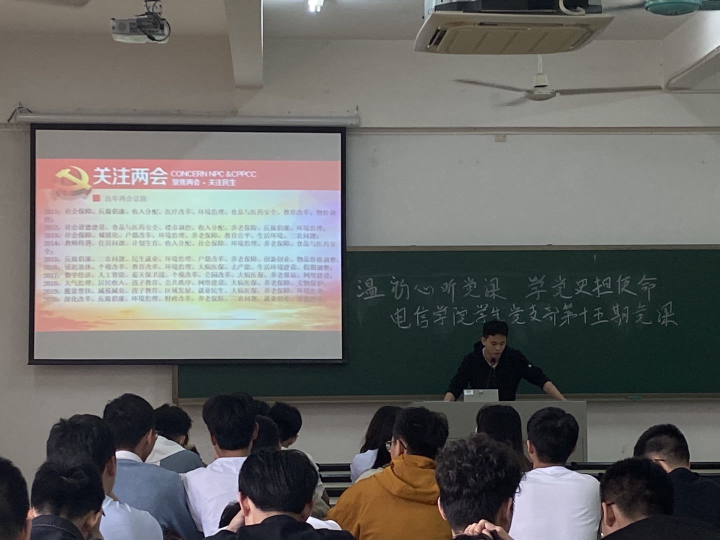 3月25日,9428cn太阳集团古天乐学生联合党支部在A1-205举行了主题为“学习全国政协十三届四次会议精神”微党课学习,主讲人是窦毅、黄一峰同志,全体学生党员同志和入党积极分子都认真听取此次党课。