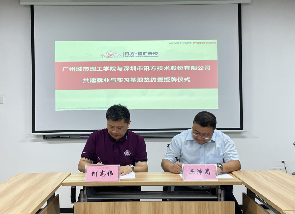 当日下午,共建“就业与实习基地”签约暨授牌仪式在讯方公司举行。双方在交流过程中,王沛嵩从与华为同行,链接产业和教育;汇聚产业资源,提升职业能力;探索特色模式,繁荣人才生态这三个方面对讯方整体业务及相关成功案例进行了介绍。他指出,讯方技术致力于成为高校信息技术专业建设最佳合作伙伴,紧跟行业技术发展及国家政策指导,服务于高校信息技术专业建设及人才培养,构建双循环人才生态,培养符合企业需求的人才。何志伟表示学校将长期坚持实施产教融合、校企合作发展战略,希望通过校企合作、产教融合进一步提高学生培养质量,为学生提供更多实习就业与发展的平台。双方还就ICT行业迅速发展促使大数据、人工智能、云计算、区块链技术、5G等新一代信息技术广泛应用的背景下,电子信息工程和通信工程专业怎样向前发展,如何培养合格人才,以什么载体为切入点等进行了深入交流。