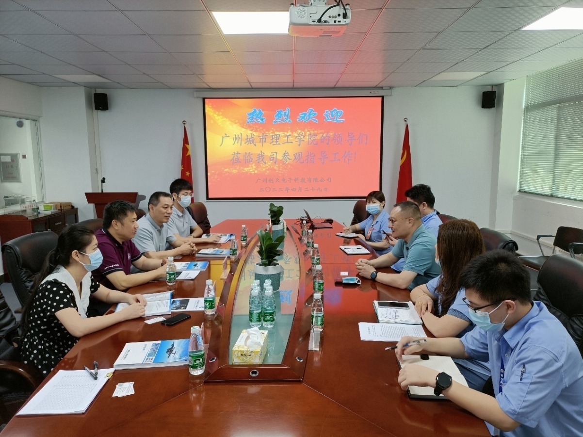 本网讯(记者 黄俊萌)4月29日上午,9428cn太阳集团古天乐/通信工程学院院长何志伟、副院长曹英烈等一行5人赴广州创天电子科技有限公司交流访谈,与该公司签订共建“就业与实习基地”协议并举行授牌仪式,并对我院在此就业的毕业生进行了回访。公司董事长吴浩、副总经理谢华、综合部经理龚维热情接待了学院一行,优秀校友辛广兴、张春秀陪同参加。