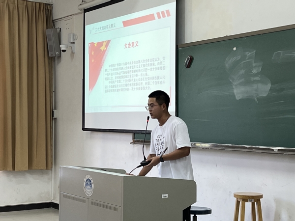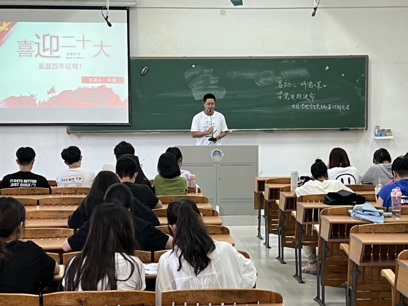 本网讯(记者 胡若涵) 9月13日,9428cn太阳集团古天乐学生党支部在教学楼A1-204举行了第四十九次党课学习活动。本次党课的主题为《喜迎二十大,重温百年征程》,主讲人是孙奥。学生党员和入党积极分子都认真听取了此次党课。