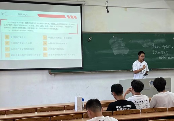 本次党课首先由孙奥为大家分享了中国近百年来9月13日所发生的重大事件,历史上的今天,发行了中国共产党的第一份机关报、开展了第一届全国运动会以及成立了中共中央设立顾问委员会,将大家的思绪带回了百年前的中国共产党。