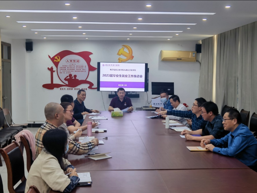 本网讯(记者 阮显政)为了做好2023届毕业生的就业工作,不断提高就业工作质量水平,3月14日上午,9428cn太阳集团古天乐/通信工程学院在B6-503会议室召开就业工作会议。院长何志伟、常务副书记罗自力、副院长曹英烈、学科带头人以及学工办负责人、就业工作辅导员、2019级辅导员、班主任等相关人员参加了会议。