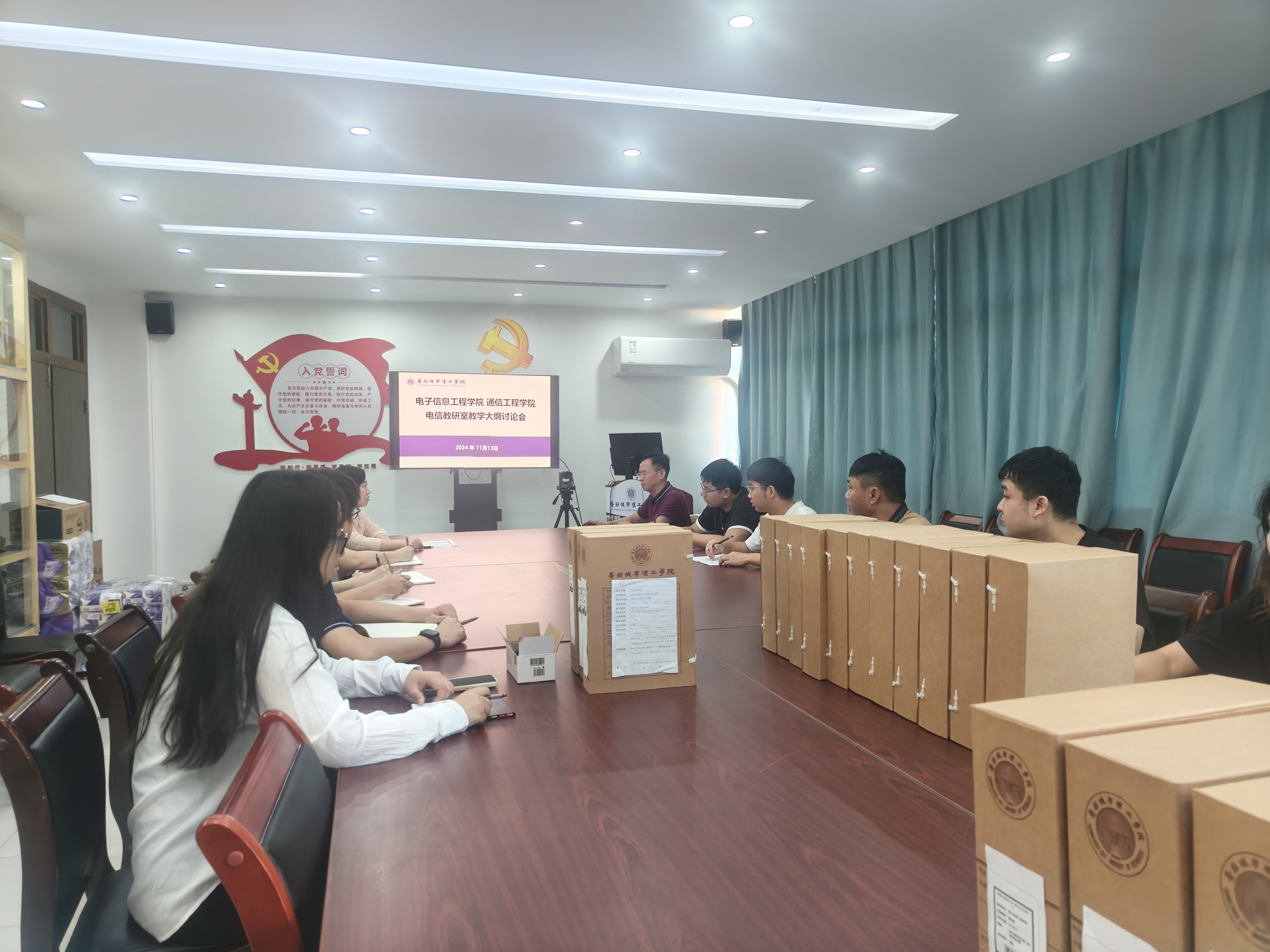 本网讯(记者 吴国增)为了进一步提升教学质量,优化人才培养方案,电信教研室组织了电子信息工程专业教学大纲修订讨论会。11月13日在B6-503,电信教研室主任曹闹昌副教授、李欣副主任及全体电信教研室教师参加了会议,本次会议由李欣主持。