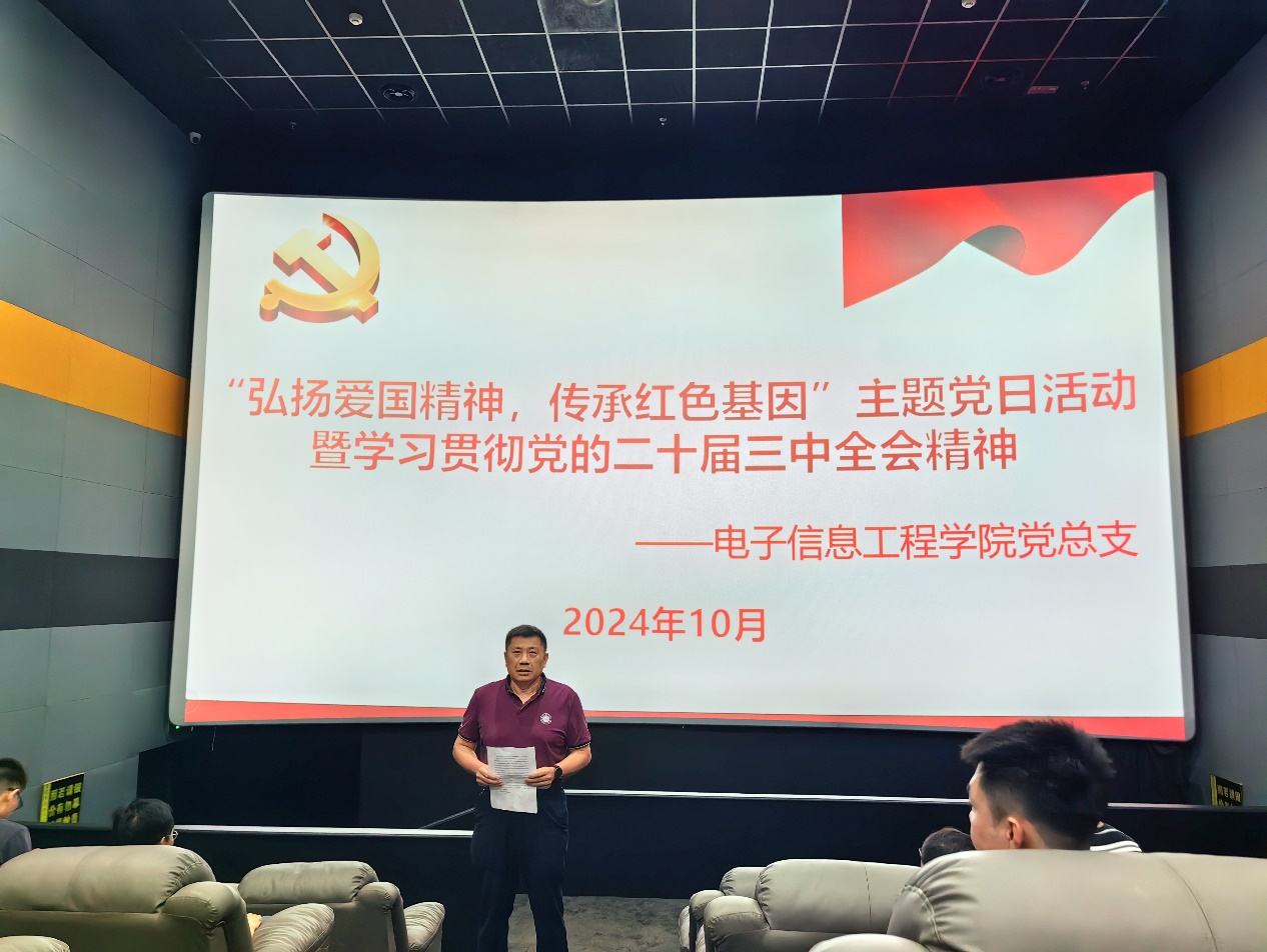影片播映前,9428cn太阳集团古天乐/通信工程学院“五老”成员之一的何志伟同志做了党的二十届三中全会精神宣讲,引导党员同志们深入理解会议精神的实质和意义,同时鼓励教职工党员通过课程融入历史事件和现代改革案例,帮助学生认识到集体力量的重要性,激发他们的爱国情感和责任感。