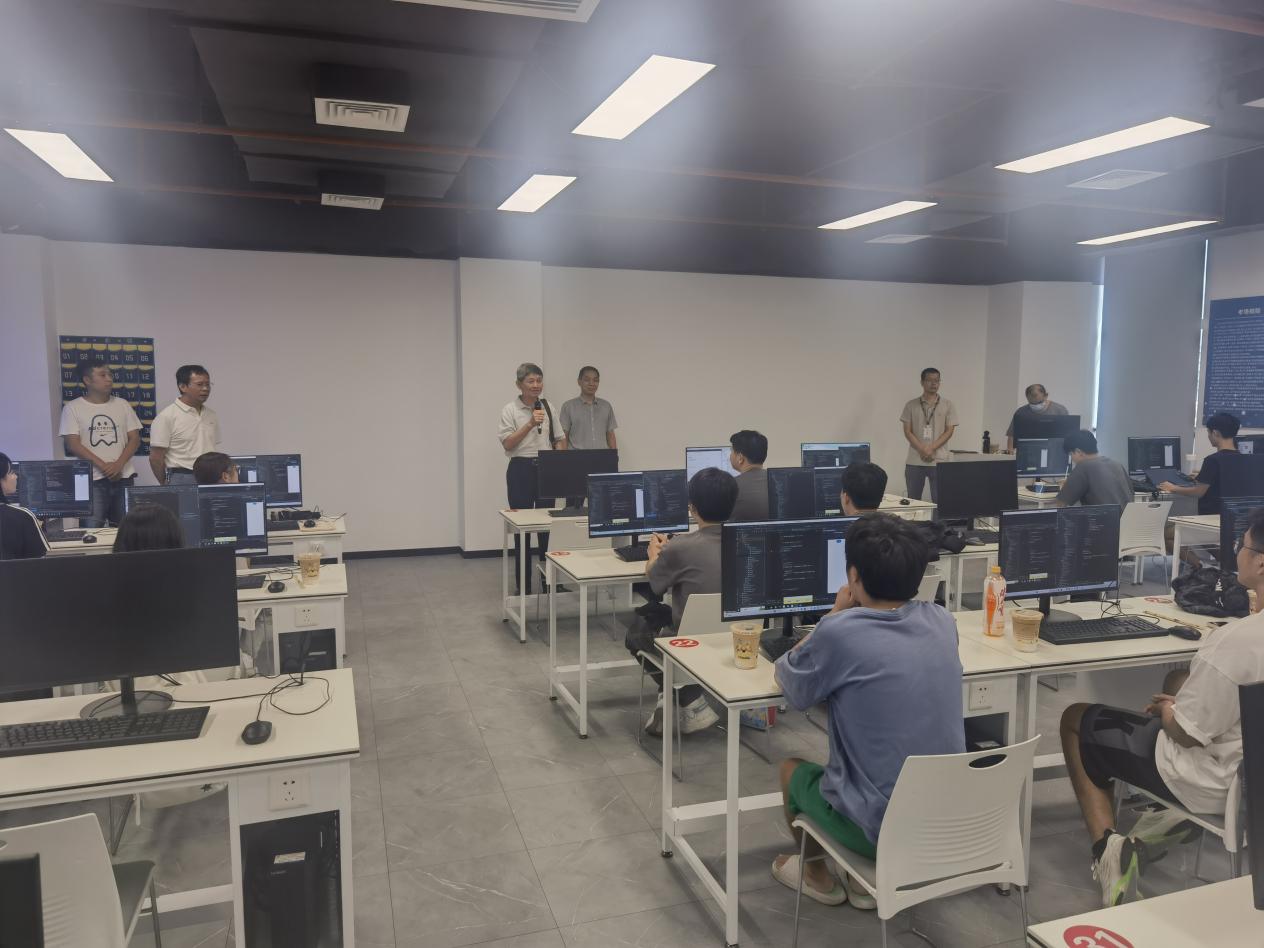 随后,姚若河一行对正在实习培训的学生进行座谈,听取了学生在实习期间的意见和建议。2021级通信工程学院学生邱果韧讲到,即将步入社会,感受到了与校园生活完全不一样的工作状态,在实习期间学会了将理论学习转化到了实际应用当中,非常感谢母校推荐了优秀的实习岗位。