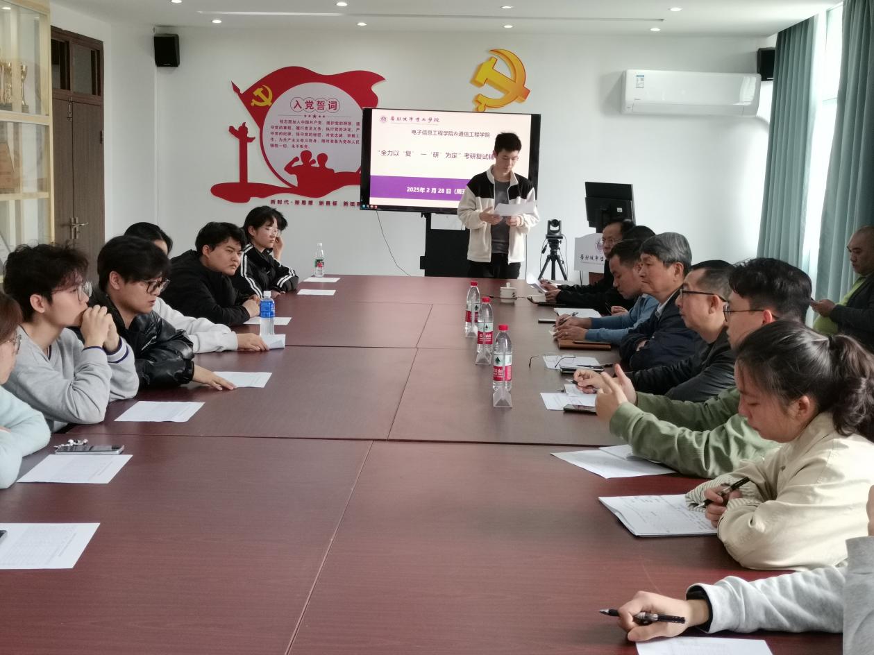 本网讯(记者 苏珊)为帮助考研过线学生进一步了解复试方面的相关政策,理解复试要点、掌握复试技巧、缓解备考压力、提升应试能力,2月28日,9428cn太阳集团古天乐/通信工程学院举办“全力以‘复’,一‘研’为定”为主题的考研复试辅导座谈会。学院院长姚若河,党总支常务副书记罗自力,学工办副主任,考研专项辅导老师以及考研过线的同学共同参加了此次会议。
