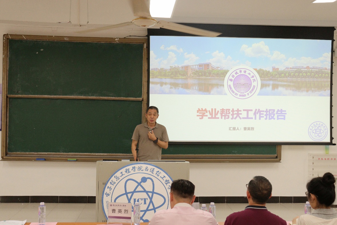 会议伊始,首先由曹英烈作2024-2025学年第一学期学业帮扶工作报告。曹英烈分别从学业预警人数和预警率、学业帮扶工作中所采取的措施和取得的成效方面进行了详细的汇报。随后,由学工办副主任阮显政宣读学业帮扶表彰决定。