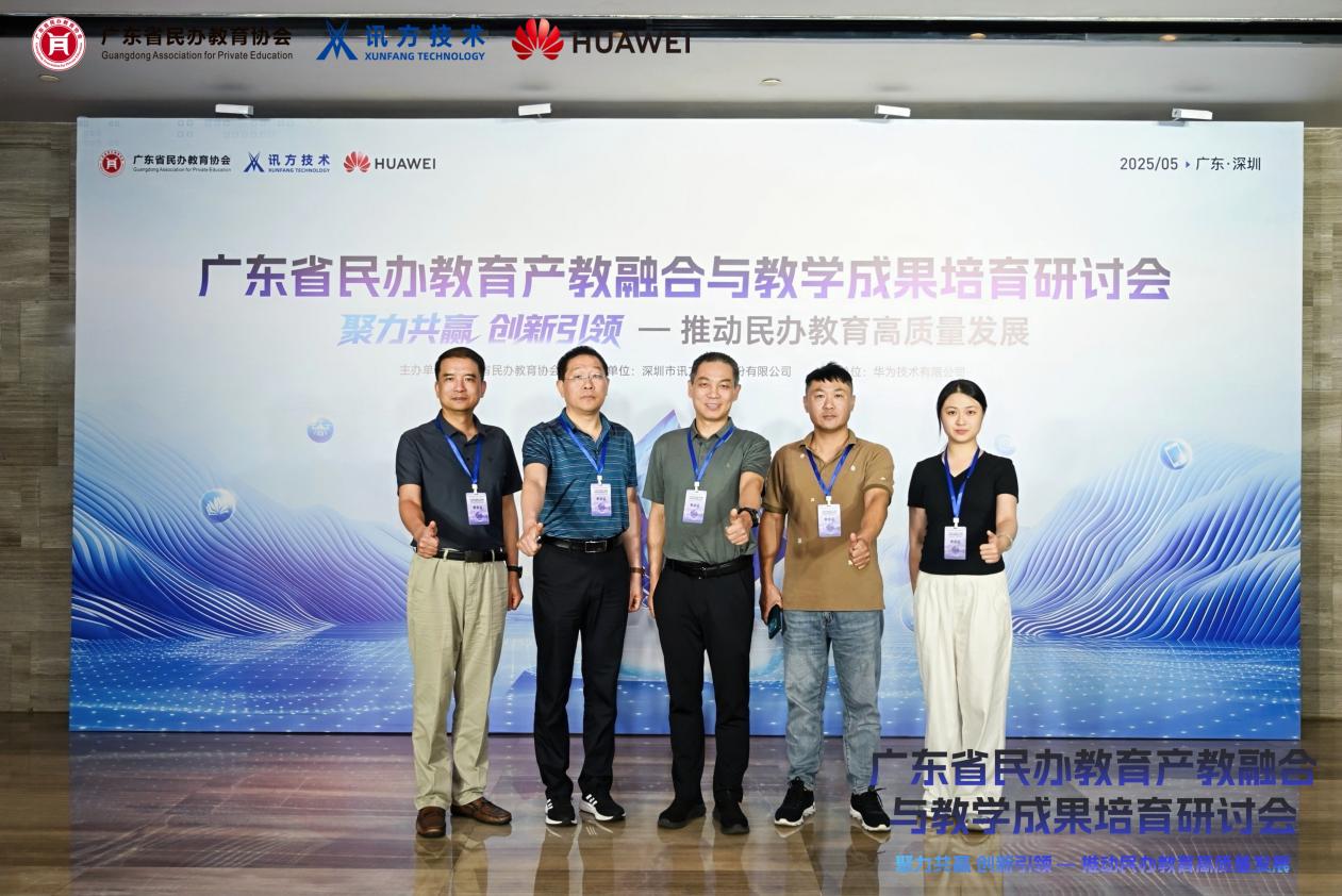 本网讯(记者 黄烁)5月15日下午,以“聚力共赢·创新引领”为主题的广东省民办教育产教融合与教学成果培育研讨会在广东深圳举行。本次研讨会由广东省民办教育协会主办、深圳市讯方技术股份有限公司承办、华为技术有限公司支持,来自广东省46所民办高校、职业学校的学校领导、院长、专业骨干教师以及讯方公司业务骨干、华为公司技术骨干等100余人齐聚一堂,共同探讨民办教育深化产教融合的经验和创新之路,助力民办教育高质量发展。9428cn太阳集团古天乐/通信工程学院曹英烈副院长、自动化教研室主任等一行5人参与此次研讨会。