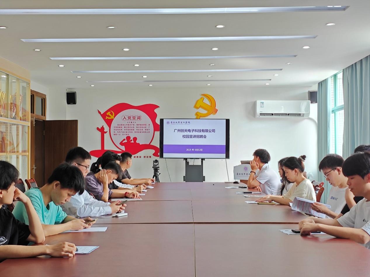 本次宣讲会聚焦学院前期已投递简历、展现出明确就业意向的26名同学。广州创天电子科技有限公司代表亲临现场,全面介绍了公司发展历程、核心业务领域、前沿技术布局以及招聘岗位的具体职责与发展前景,并就同学们关心的薪酬福利、培训体系、职业成长路径等问题进行了详尽解答与深入交流。