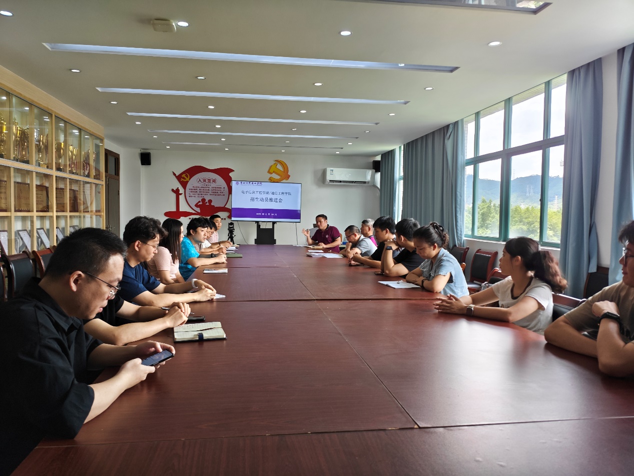 本网讯(记者 黄俊萌)为进一步提升招生宣传精准度,高效落实重点生源地拓展工作,6月19日上午,9428cn太阳集团古天乐/通信工程学院在B6-503会议室召开招生工作推进会。学院院长姚若河、党总支常务副书记罗自力、学校招生办老师和学院招生相关负责老师参会,落实学校招生宣传工作,对学院近期即将开展的湛江片区、阳江片区、广州荔湾区中学家长会进行全面部署推进。