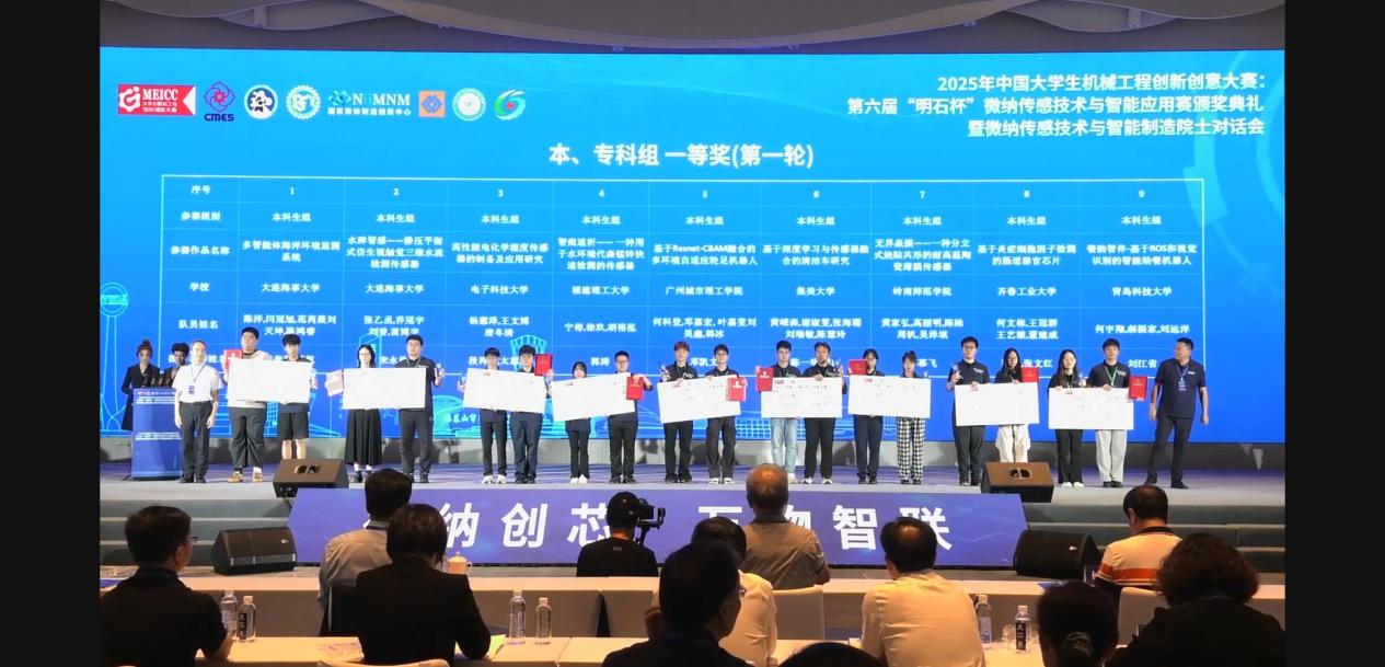 据悉,中国大学生机械工程创新创意大赛,由中国机械工程学会主办,2019年起纳入《全国普通高校学科竞赛排行榜》竞赛项目。2025“明石杯”中国大学生微纳大赛主题为“微纳创芯,万物智联”。自3月启动以来,组委会经过形式审查、作品查重、省赛或区域赛评审,最终369项(研究生组133项、本科生组231项、专科生组5项)获得初赛一等奖的作品晋级全国总决赛。最终本科生组18支队伍获得全国一等奖。