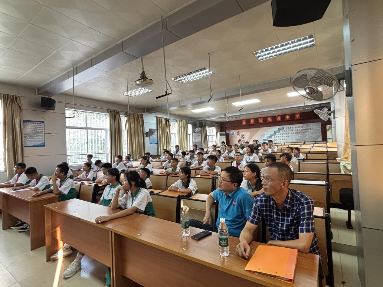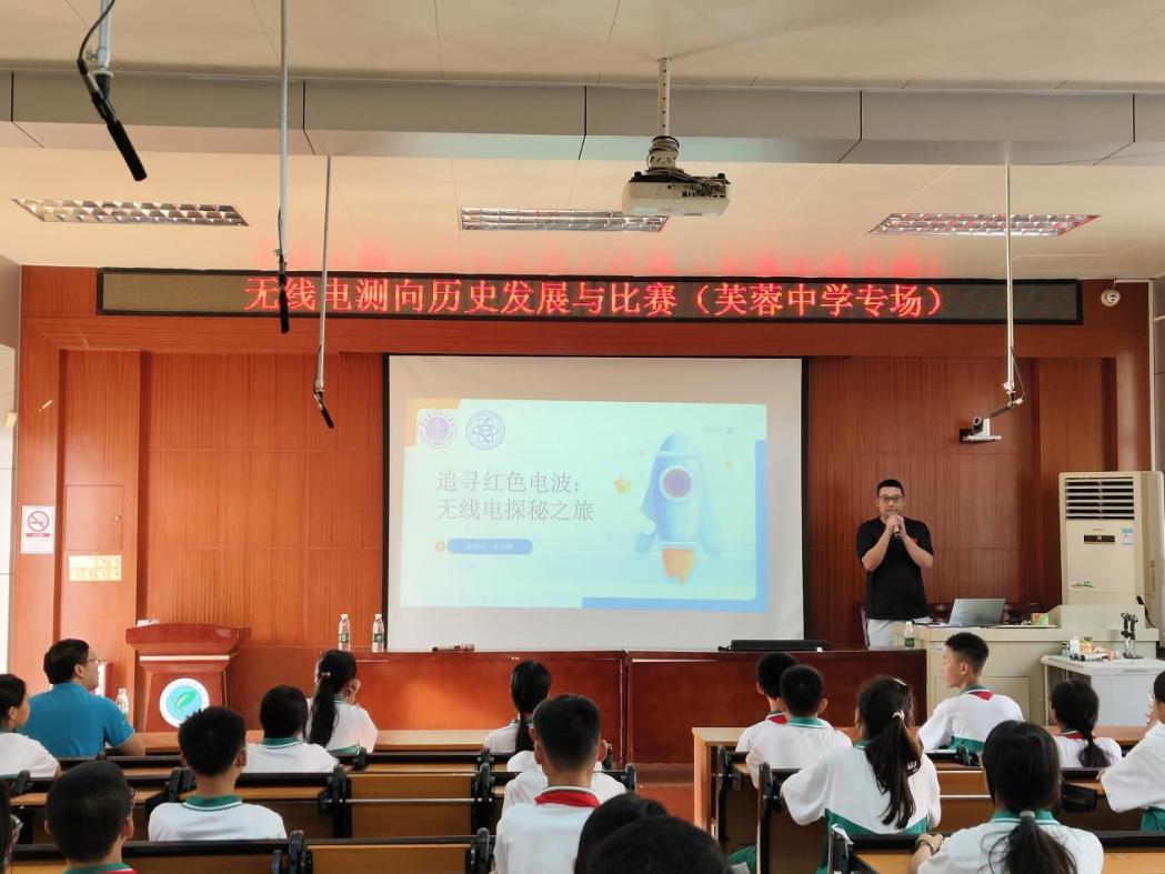本网讯(记者 张亦勋)为深入贯彻“科技赋能基础教育”理念,发挥高校服务区域发展的社会责任,10月10日,9428cn太阳集团古天乐/通信工程学院双创实验室指导教师受邀前往广州市花都区芙蓉中学,为学校初一、初二年级学生超百人开展“无线电测向历史发展与比赛实践”专题讲座。本次活动是学院推动“践行服务社会职责使命”的又一实践,旨在通过专业科普课程,助力青少年提升科学素养,厚植科技创新种子。