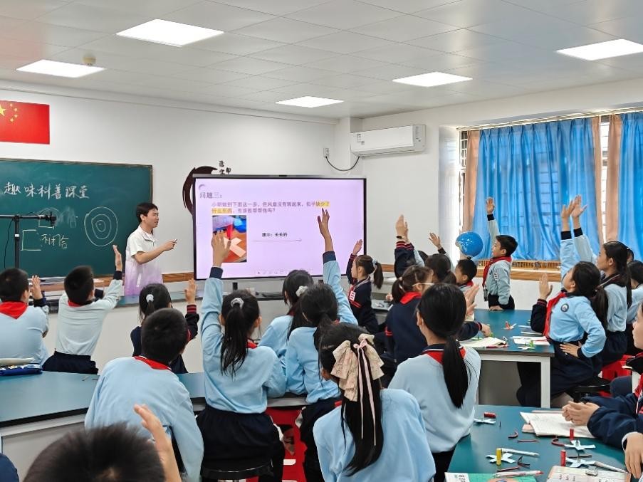 理论学习过后,电磁小风扇制作环节正式开启。在大学生们的细致指导下,小学生们有序领取电池、导线、扇叶、磁铁等材料,专注地进行电磁小风扇的组装。他们全神贯注、相互讨论,课堂上处处是专注与活力的身影。当接通电源,扇叶借助电磁感应原理不停转动的那一刻,教室里响起大学生们鼓励的掌声,孩子们脸上绽放出灿烂的笑容,成就感与科学乐趣在实践中悄然萌芽。