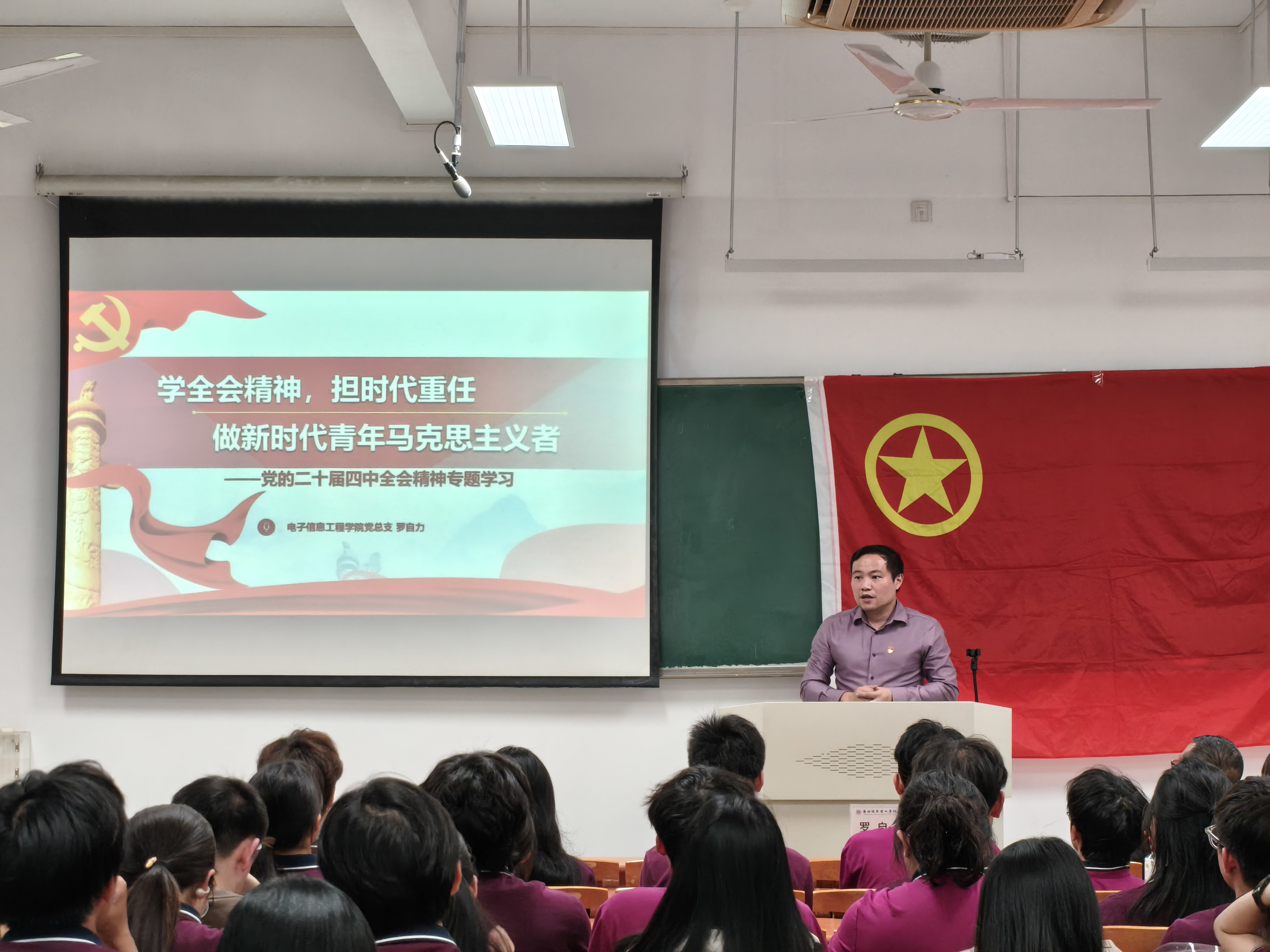 第五期青马班邀请了学院党总支常务副书记罗自力为学员们讲授思政第一课。他以《学全会精神,担时代重任》为主题,围绕党的二十届四中全会精神,结合时事热点与学科专业特点,深刻阐述新时代青年成长成才的要求,引导学员坚定理想信念、夯实专业基础、勇担时代责任,努力在国家发展与科技创新中实现人生价值。
