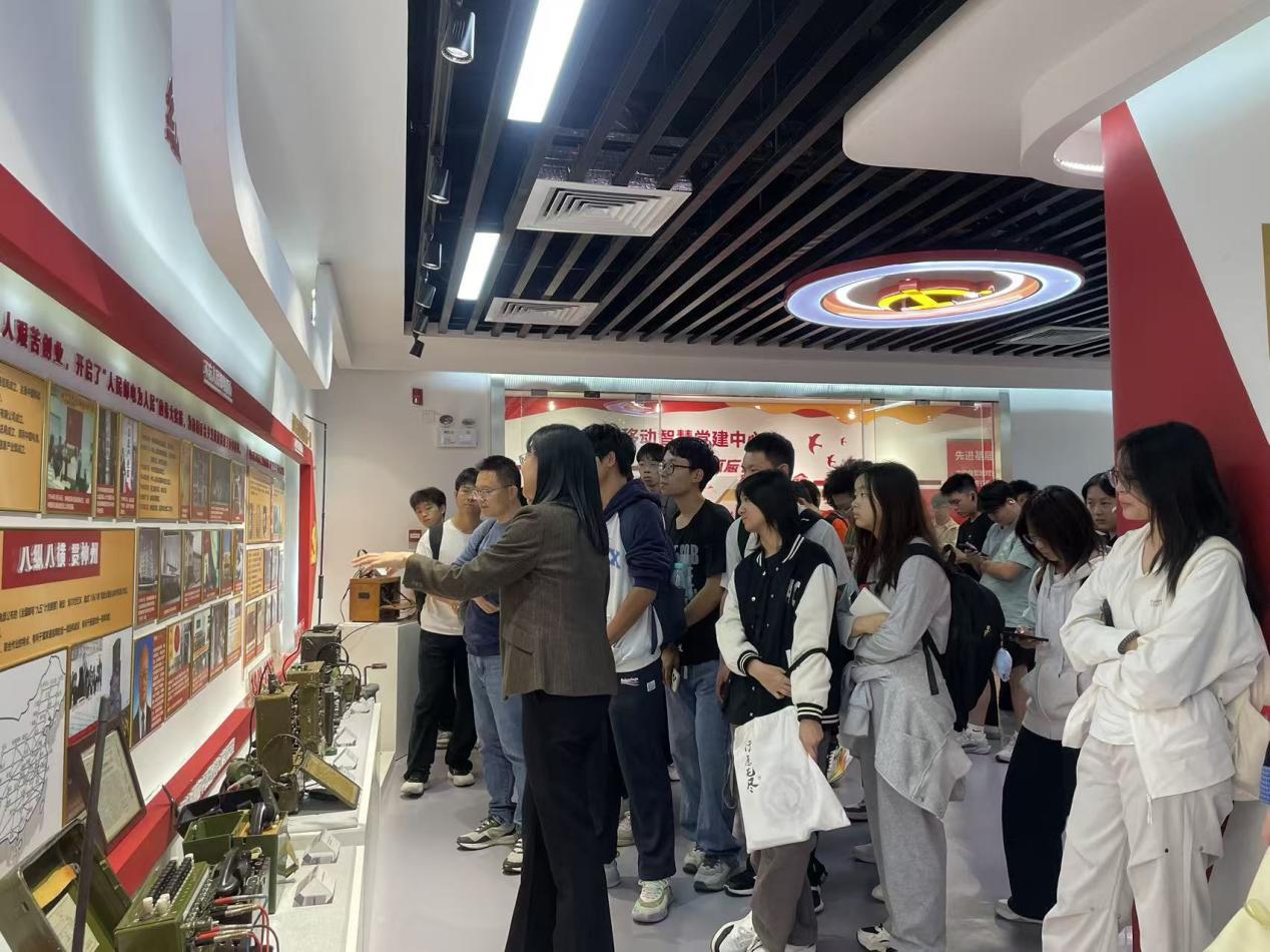 在红色党建展厅,一场跨越时空的“通信红色之旅”同步开启。展厅以“党建引领、数智赋能”为核心主线,通过图文史料、实物陈列、多媒体演示等多种形式,系统回溯了红色通信事业从“烽火传信”到“5G 智能”的跨越式发展历程,重点展示了广州移动将党建工作与现代企业制度深度融合的创新实践。尤其是“智慧党建”展区,5G、大数据技术在党员教育、组织管理、服务群众中的创新应用,让同学们真切感受到红色精神在新时代的技术表达与传承路径。